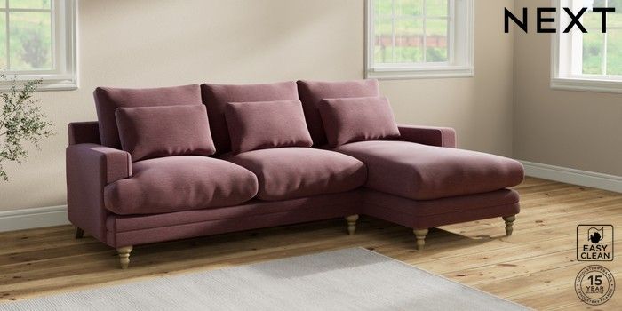 6.12.1 Buy Hutton Deep Relaxed Sit Medium Sofa Chaise - Right Hand Fine Chenille Easy Clean Mid Mulberry Purple Country Turned - Light from the Next UK online shop Click here to use our accessible website