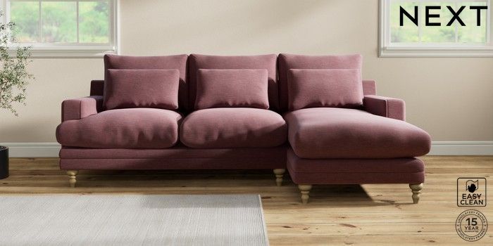 7.0.3 Buy Hutton Deep Relaxed Sit Medium Sofa Chaise - Right Hand Fine Chenille Easy Clean Mid Mulberry Purple Country Turned - Light from the Next UK online shop Click here to use our accessible website
