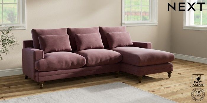 6.12.1 Buy Hutton Deep Relaxed Sit Medium Sofa Chaise - Right Hand Fine Chenille Easy Clean Mid Mulberry Purple Country Turned - Mid from the Next UK online shop Click here to use our accessible website