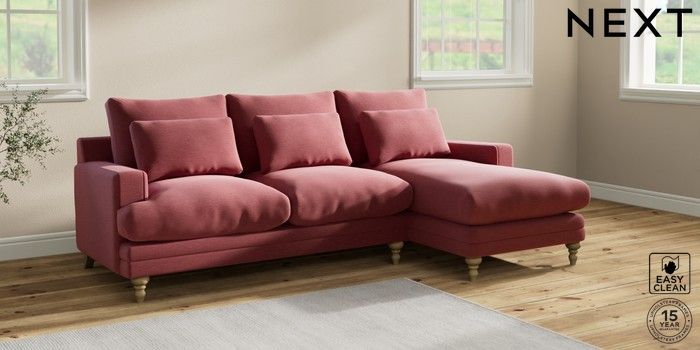 6.12.1 Buy Hutton Deep Relaxed Sit Medium Sofa Chaise - Right Hand Fine Chenille Easy Clean Mid Pink Country Turned - Light from the Next UK online shop Click here to use our accessible website