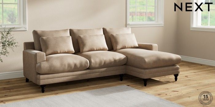 6.12.1 Buy Hutton Deep Relaxed Sit Medium Sofa Chaise - Right Hand Luxe Chenille Mid Camel Beige Country Turned - Dark from the Next UK online shop Click here to use our accessible website