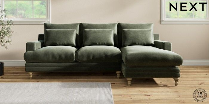7.0.3 Buy Hutton Deep Relaxed Sit Medium Sofa Chaise - Right Hand Luxe Chenille Mid Green Country Turned - Light from the Next UK online shop Click here to use our accessible website
