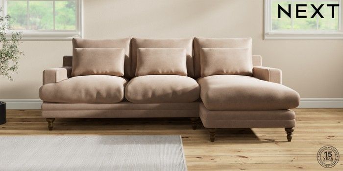 7.0.3 Buy Hutton Deep Relaxed Sit Medium Sofa Chaise - Right Hand Luxe Chenille Mid Natural Country Turned - Mid from the Next UK online shop Click here to use our accessible website