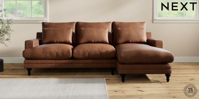 7.0.3 Buy Hutton Deep Relaxed Sit Medium Sofa Chaise - Right Hand Monza Faux Leather Easy Clean Chestnut Brown Country Turned - Dark from the Next UK online shop Click here to use our accessible website