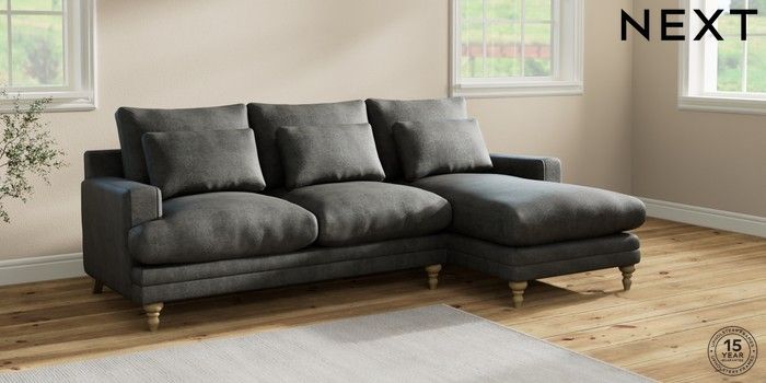 6.12.1 Buy Hutton Deep Relaxed Sit Medium Sofa Chaise - Right Hand Monza Faux Leather Easy Clean Dark Grey Country Turned - Light from the Next UK online shop Click here to use our accessible website