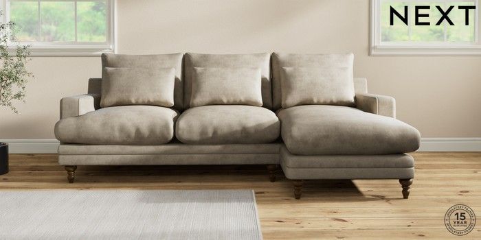 7.0.3 Buy Hutton Deep Relaxed Sit Medium Sofa Chaise - Right Hand Monza Faux Leather Easy Clean Mink Brown Country Turned - Mid from the Next UK online shop Click here to use our accessible website