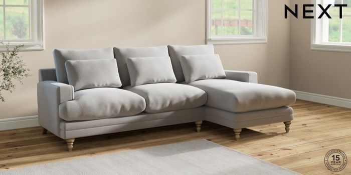 6.12.1 Buy Hutton Deep Relaxed Sit Medium Sofa Chaise - Right Hand Natural Mix Light Grey Country Turned - Light from the Next UK online shop Click here to use our accessible website