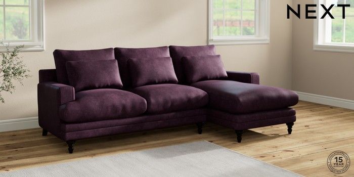6.12.1 Buy Hutton Deep Relaxed Sit Medium Sofa Chaise - Right Hand Plush Chenille Dark Plum Purple Country Turned - Dark from the Next UK online shop Click here to use our accessible website