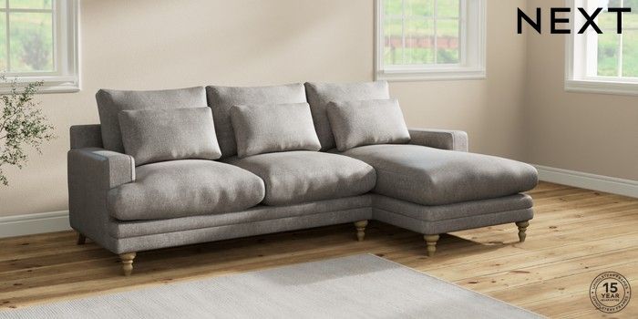 6.12.1 Buy Hutton Deep Relaxed Sit Medium Sofa Chaise - Right Hand Plush Chenille Light Grey Country Turned - Light from the Next UK online shop Click here to use our accessible website