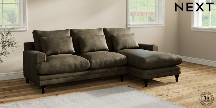 6.12.1 Buy Hutton Deep Relaxed Sit Medium Sofa Chaise - Right Hand Plush Chenille Moss Green Country Turned - Dark from the Next UK online shop Click here to use our accessible website