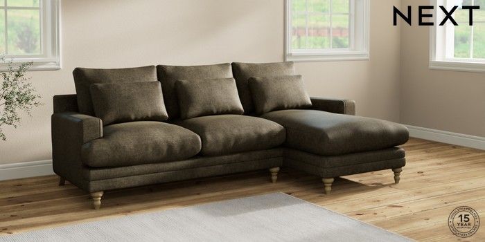 6.12.1 Buy Hutton Deep Relaxed Sit Medium Sofa Chaise - Right Hand Plush Chenille Moss Green Country Turned - Light from the Next UK online shop Click here to use our accessible website