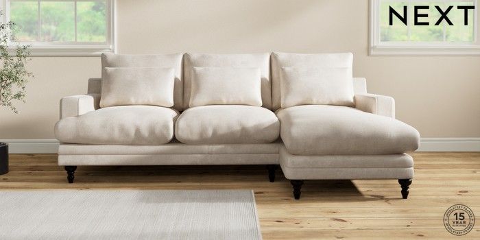 7.0.3 Buy Hutton Deep Relaxed Sit Medium Sofa Chaise - Right Hand Plush Chenille Oyster Country Turned - Dark from the Next UK online shop Click here to use our accessible website