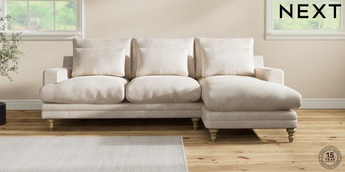 7.0.3 Buy Hutton Deep Relaxed Sit Medium Sofa Chaise - Right Hand Plush Chenille Oyster Country Turned - Light from the Next UK online shop Click here to use our accessible website