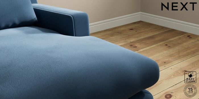 7.0.3 Buy Hutton Deep Relaxed Sit Medium Sofa Chaise - Right Hand Plush Velvet Easy Clean Airforce Blue Country Turned - Mid from the Next UK online shop Click here to use our accessible website