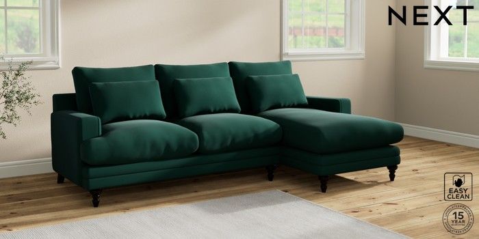 6.12.1 Buy Hutton Deep Relaxed Sit Medium Sofa Chaise - Right Hand Plush Velvet Easy Clean Bottle Green Country Turned - Dark from the Next UK online shop Click here to use our accessible website