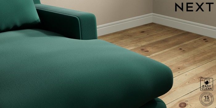 7.0.3 Buy Hutton Deep Relaxed Sit Medium Sofa Chaise - Right Hand Plush Velvet Easy Clean Bottle Green Country Turned - Light from the Next UK online shop Click here to use our accessible website