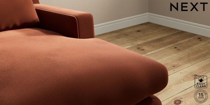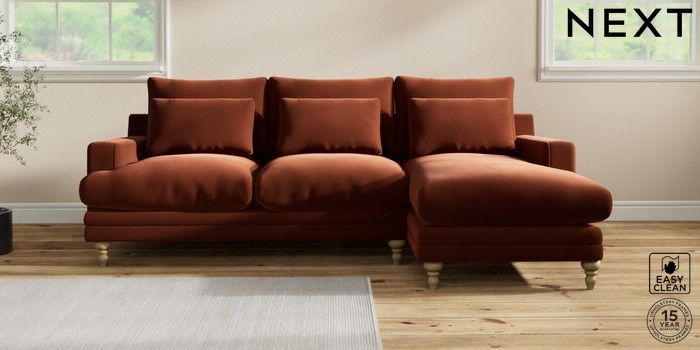 7.0.3 Buy Hutton Deep Relaxed Sit Medium Sofa Chaise - Right Hand Plush Velvet Easy Clean Ginger Orange Country Turned - Light from the Next UK online shop Click here to use our accessible website