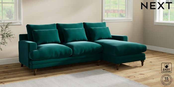 6.12.1 Buy Hutton Deep Relaxed Sit Medium Sofa Chaise - Right Hand Plush Velvet Easy Clean Juniper Green Country Turned - Mid from the Next UK online shop Click here to use our accessible website