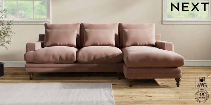 7.0.3 Buy Hutton Deep Relaxed Sit Medium Sofa Chaise - Right Hand Plush Velvet Easy Clean Mid Natural Country Turned - Mid from the Next UK online shop Click here to use our accessible website