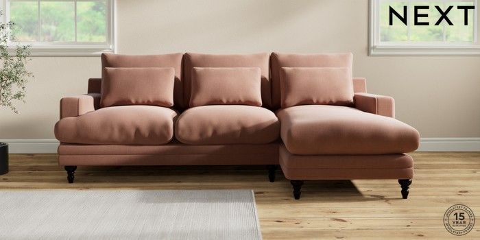 7.0.3 Buy Hutton Deep Relaxed Sit Medium Sofa Chaise - Right Hand Relaxed Linen Look Light Rust Brown Country Turned - Dark from the Next UK online shop Click here to use our accessible website