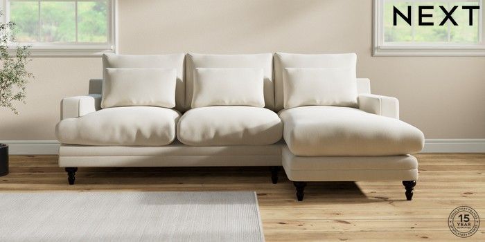 7.0.3 Buy Hutton Deep Relaxed Sit Medium Sofa Chaise - Right Hand Relaxed Linen Look Oyster Country Turned - Dark from the Next UK online shop Click here to use our accessible website