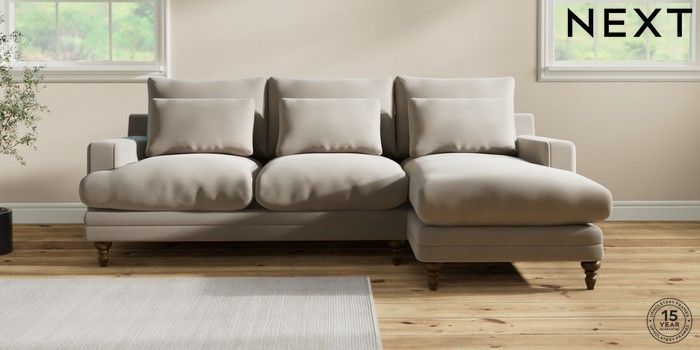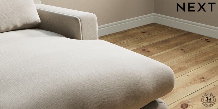 7.0.3 Buy Hutton Deep Relaxed Sit Medium Sofa Chaise - Right Hand Ripple Chenille Light Natural Country Turned - Mid from the Next UK online shop Click here to use our accessible website