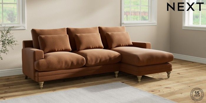 6.12.1 Buy Hutton Deep Relaxed Sit Medium Sofa Chaise - Right Hand Ripple Chenille Mid Rust Brown Country Turned - Light from the Next UK online shop Click here to use our accessible website