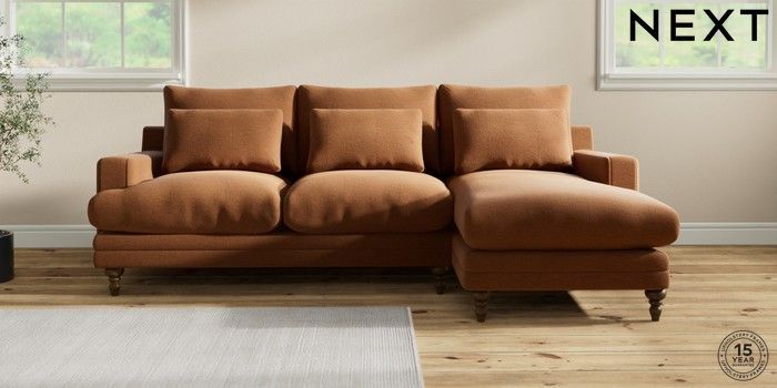 7.0.3 Buy Hutton Deep Relaxed Sit Medium Sofa Chaise - Right Hand Ripple Chenille Mid Rust Brown Country Turned - Mid from the Next UK online shop Click here to use our accessible website