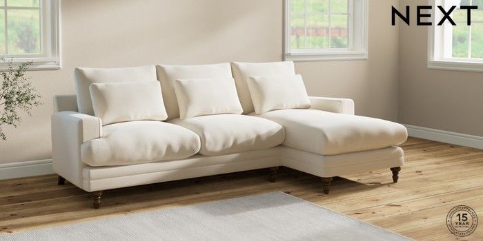6.12.1 Buy Hutton Deep Relaxed Sit Medium Sofa Chaise - Right Hand Ripple Chenille Oyster Country Turned - Mid from the Next UK online shop Click here to use our accessible website