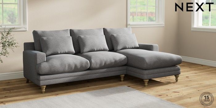 6.12.1 Buy Hutton Deep Relaxed Sit Medium Sofa Chaise - Right Hand Studio Chenille Mid Grey Country Turned - Light from the Next UK online shop Click here to use our accessible website