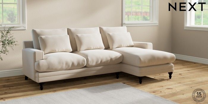6.12.1 Buy Hutton Deep Relaxed Sit Medium Sofa Chaise - Right Hand Studio Chenille Oyster Country Turned - Dark from the Next UK online shop Click here to use our accessible website