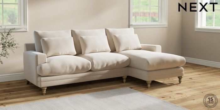 6.12.1 Buy Hutton Deep Relaxed Sit Medium Sofa Chaise - Right Hand Studio Chenille Oyster Country Turned - Light from the Next UK online shop Click here to use our accessible website