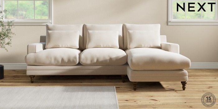 7.0.3 Buy Hutton Deep Relaxed Sit Medium Sofa Chaise - Right Hand Studio Chenille Oyster Country Turned - Mid from the Next UK online shop Click here to use our accessible website