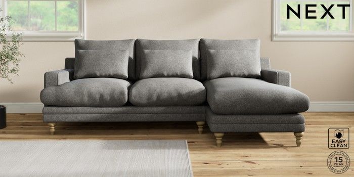 7.0.3 Buy Hutton Deep Relaxed Sit Medium Sofa Chaise - Right Hand Tweedy Blend Easy Clean Dark Grey Country Turned - Light from the Next UK online shop Click here to use our accessible website