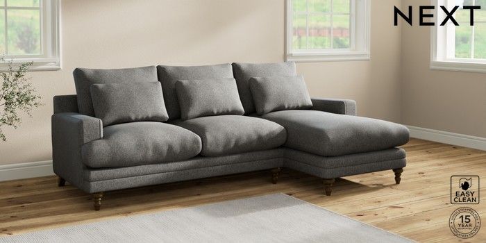 6.12.1 Buy Hutton Deep Relaxed Sit Medium Sofa Chaise - Right Hand Tweedy Blend Easy Clean Dark Grey Country Turned - Mid from the Next UK online shop Click here to use our accessible website