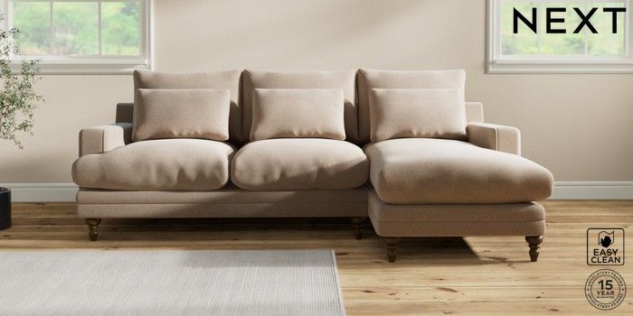 7.0.3 Buy Hutton Deep Relaxed Sit Medium Sofa Chaise - Right Hand Tweedy Blend Easy Clean Light Dove Natural Country Turned - Mid from the Next UK online shop Click here to use our accessible website