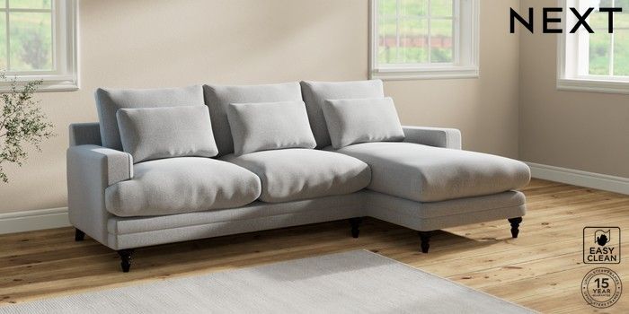 6.12.1 Buy Hutton Deep Relaxed Sit Medium Sofa Chaise - Right Hand Tweedy Blend Easy Clean Light Silver Grey Country Turned - Dark from the Next UK online shop Click here to use our accessible website