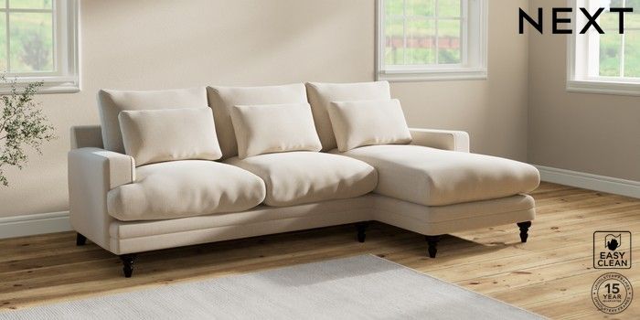6.12.1 Buy Hutton Deep Relaxed Sit Medium Sofa Chaise - Right Hand Tweedy Blend Easy Clean Oyster Country Turned - Dark from the Next UK online shop Click here to use our accessible website