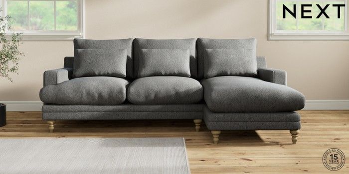 7.0.3 Buy Hutton Deep Relaxed Sit Medium Sofa Chaise - Right Hand Tweedy Chenille Dark Grey Country Turned - Light from the Next UK online shop Click here to use our accessible website