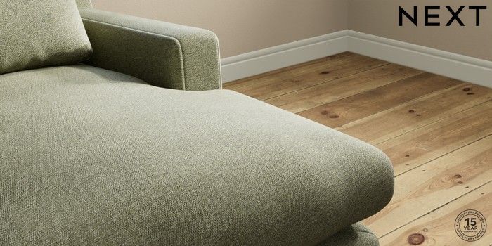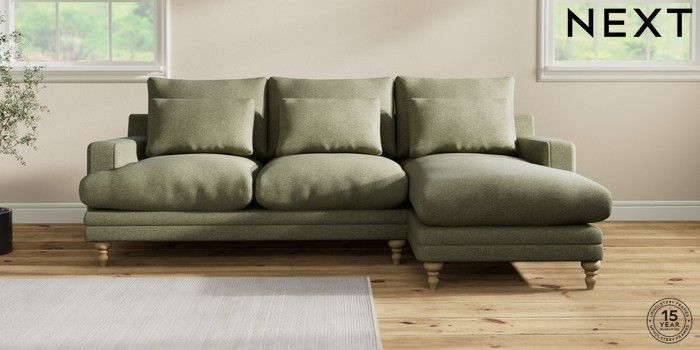 7.0.3 Buy Hutton Deep Relaxed Sit Medium Sofa Chaise - Right Hand Tweedy Chenille Mid Moss Green Country Turned - Light from the Next UK online shop Click here to use our accessible website