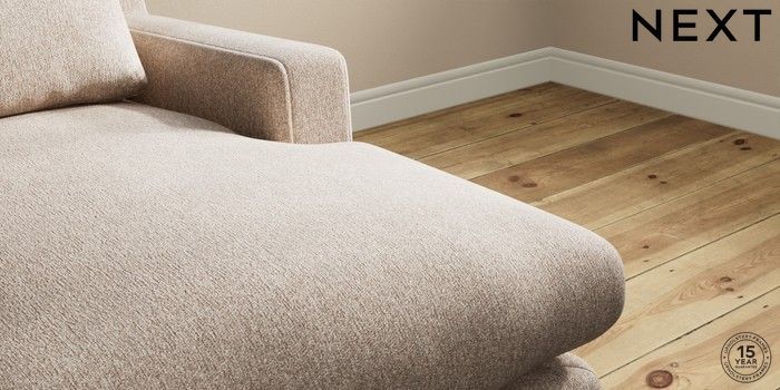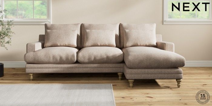 7.0.3 Buy Hutton Deep Relaxed Sit Medium Sofa Chaise - Right Hand Tweedy Chenille Mid Natural Country Turned - Light from the Next UK online shop Click here to use our accessible website