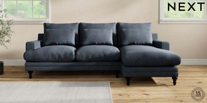 7.0.3 Buy Hutton Deep Relaxed Sit Medium Sofa Chaise - Right Hand Tweedy Chenille Navy Blue Country Turned - Dark from the Next UK online shop Click here to use our accessible website
