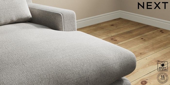 7.0.3 Buy Hutton Deep Relaxed Sit Medium Sofa Chaise - Right Hand Woven Chenille Easy Clean Light Grey Country Turned - Light from the Next UK online shop Click here to use our accessible website