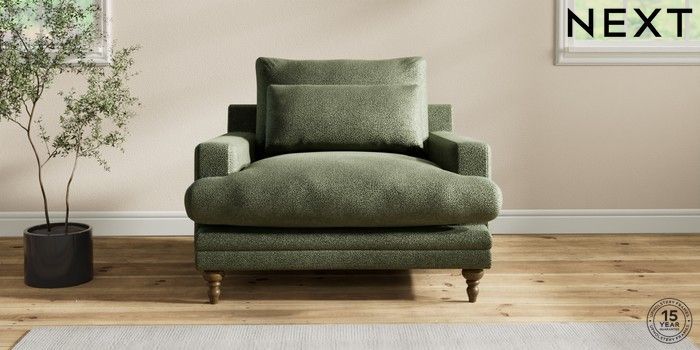 6.12.1 Buy Hutton Deep Relaxed Sit Snuggle Boucle Chenille Dark Moss Green Country Turned - Mid from the Next UK online shop Click here to use our accessible website