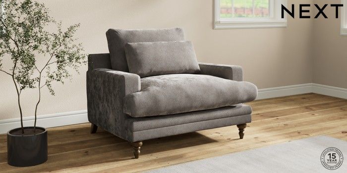 7.0.3 Buy Hutton Deep Relaxed Sit Snuggle Distressed Velour French Grey Country Turned - Mid from the Next UK online shop Click here to use our accessible website