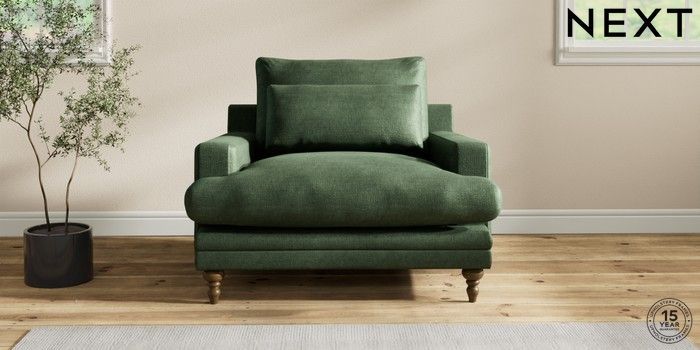 6.12.1 Buy Hutton Deep Relaxed Sit Snuggle Luxe Chenille Dark Green Country Turned - Mid from the Next UK online shop Click here to use our accessible website
