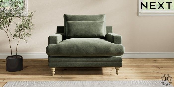 6.12.1 Buy Hutton Deep Relaxed Sit Snuggle Luxe Chenille Mid Green Country Turned - Light from the Next UK online shop Click here to use our accessible website