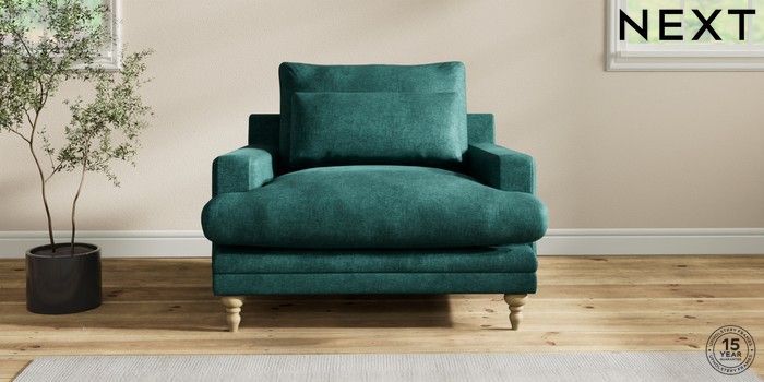 6.12.1 Buy Hutton Deep Relaxed Sit Snuggle Plush Chenille Dark Teal Green Country Turned - Light from the Next UK online shop Click here to use our accessible website