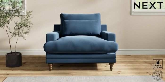 6.12.1 Buy Hutton Deep Relaxed Sit Snuggle Plush Velvet Easy Clean Airforce Blue Country Turned - Mid from the Next UK online shop Click here to use our accessible website