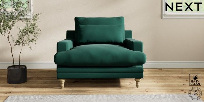 6.12.1 Buy Hutton Deep Relaxed Sit Snuggle Plush Velvet Easy Clean Bottle Green Country Turned - Light from the Next UK online shop Click here to use our accessible website